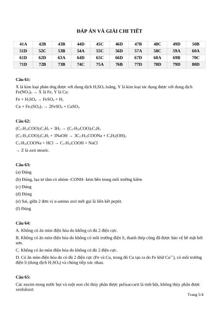 Câu 52: Khi hòa tan lòng trắng trứng vào nước sau đó đun sôi, lòng trắng trứng sẽ bị A. Cháy đen.