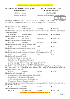 Đề thi thử tốt nghiệp Hóa học trường THPT Chiêm Hóa - Tuyên Quang lần 1 năm 2024