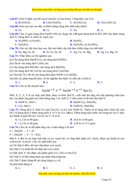 Câu 67: Este X được tạo bởi ancol metylic và axit fomic. Công thức của X là : A. HCOOCH3. B. CH3COOCH3. C. HCOOC2H5. D. CH3COOC2H5.
