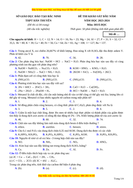 ĐỀ THI KHẢO SÁT ĐẦU NĂM THPT HÀN THUYÊN NĂM HỌC 2023-2024