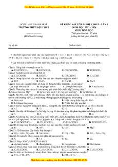 Đề thi thử tốt nghiệp Hóa học trường THPT Hậu Lộc 1 lần 1 năm 2024