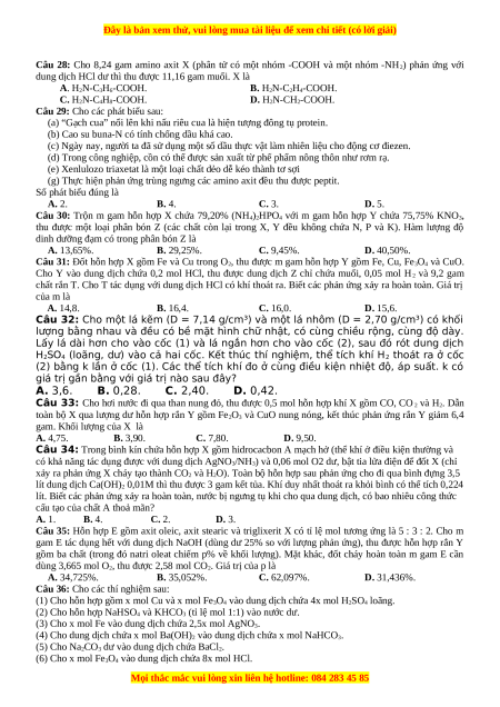 Câu 28: Cho 8,24 gam amino axit X (phân tử có một nhóm -COOH và một nhóm -NH2) phản ứng với