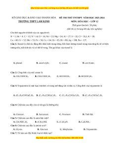 ĐỀ THI THỬ TNTHPT NĂM HỌC 2023-2024 TRƯỜNG THPT LAM KINH