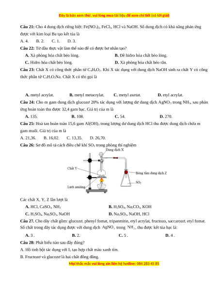 Câu 23: Chất X có công thức phân tử C4H6O2. Khi X tác dụng với dung dịch NaOH sinh ra chất Y có công