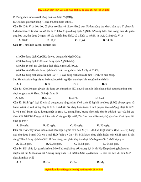 Câu 31: Cho 3,0 gam glyxin tác dụng với dung dịch HCl dư, cô cạn cẩn thận chung dịch sau phản ứng, thu