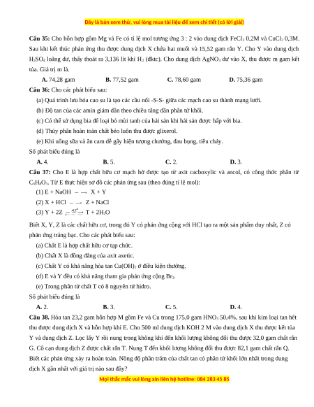 Chúng tôi đảm bảo đủ số lượng đề đã cam kết hoặc có thể nhiều hơn, tất cả có BẢN WORD, LỜI GIẢI CHI TIẾT và tải về dễ dàng.