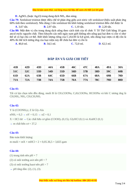 Câu 76: X là hỗn hợp 2 ancol đơn chức đồng đẳng liên tiếp. Cho 0,3 mol X tác dụng hoàn toàn với CuO