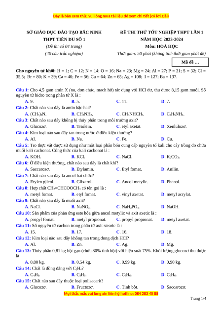 ĐỀ THI THỬ TỐT NGHIỆP THPT LẦN 1 THPT TIÊN DU SỐ 1 NĂM HỌC 2023-2024