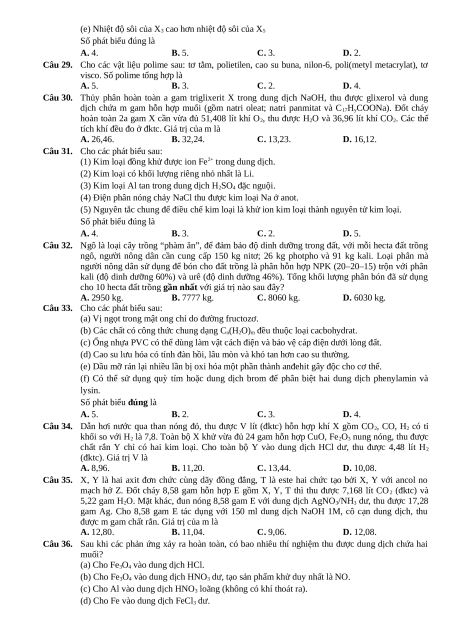 Câu 29. Cho các vật liệu polime sau: tơ tằm, polietilen, cao su buna, nilon-6, poli(metyl metacrylat), tơ