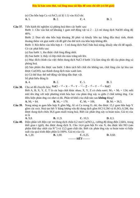 Câu 37. Tiến hành thí nghiệm xà phòng hoá theo các bước sau: