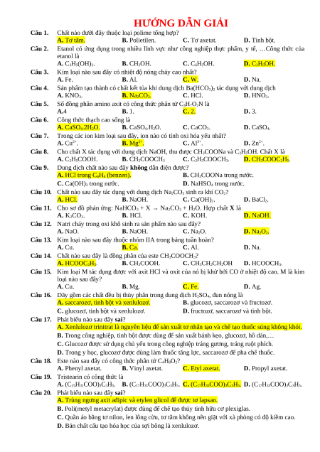 Câu 13. Kim loại nào sau đây thuộc nhóm IIA trong bảng tuần hoàn? A. Cu. B. Ca. C. Al. D. Na.