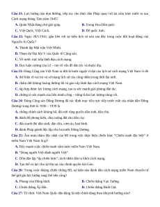 Câu 20: Cuộc kháng chiến chống thực dân Pháp của nhân dân Lào (1946 – 1954) được sự giúp đỡ của quân tình nguyện A. Mã Lai. B. Indonexia. C. Việt Nam. D. Miến Điện.