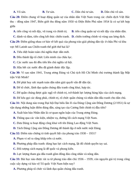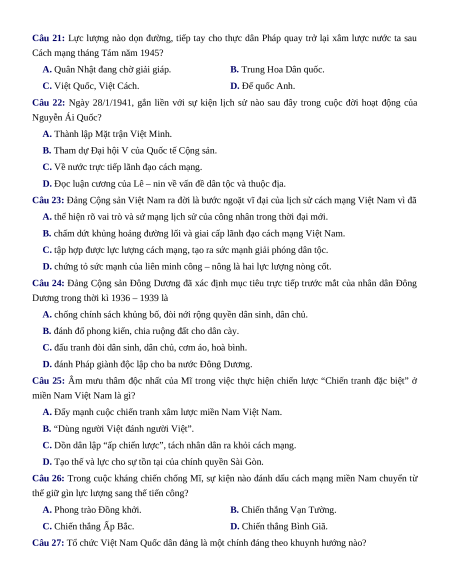 Câu 24: Đảng Cộng sản Đông Dương đã xác định mục tiêu trực tiếp trước mắt của nhân dân Đông
