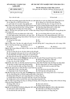 Đề thi thử tốt nghiệp Lịch sử Sở GD&ĐT Lạng Sơn năm 2024