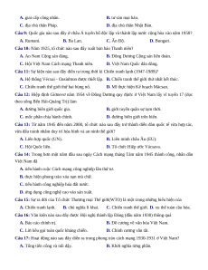 Câu 12: Hiệp định Giơnevơ năm 1954 về Đông Dương quy định: ở Việt Nam lấy vĩ tuyến 17 (dọc
