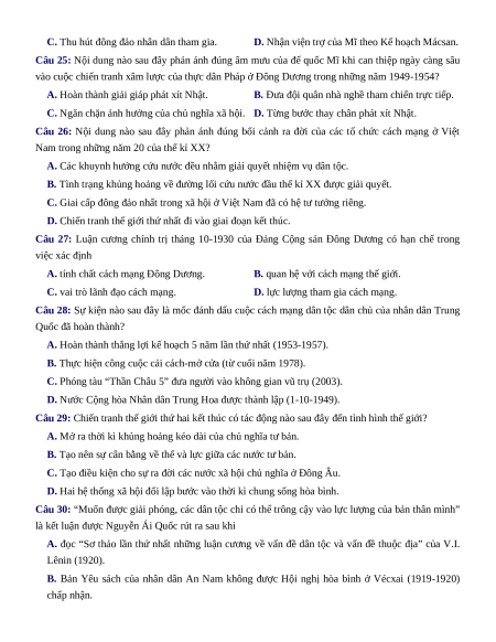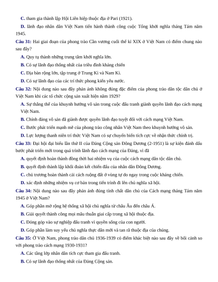 Câu 20: Trong phong trào dân chủ 1936-1939, nhân dân Việt Nam đã