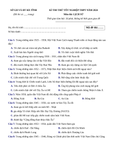 Đề thi thử tốt nghiệp Lịch sử Sở Giáo dục Hà Tĩnh năm 2024