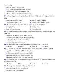 Câu 5: Năm 1950, quân dân Việt Nam đã chủ động tiến công quân Pháp ở A. Đồng Xoài B. Ba Gia C. An Lão D. Đông Khê