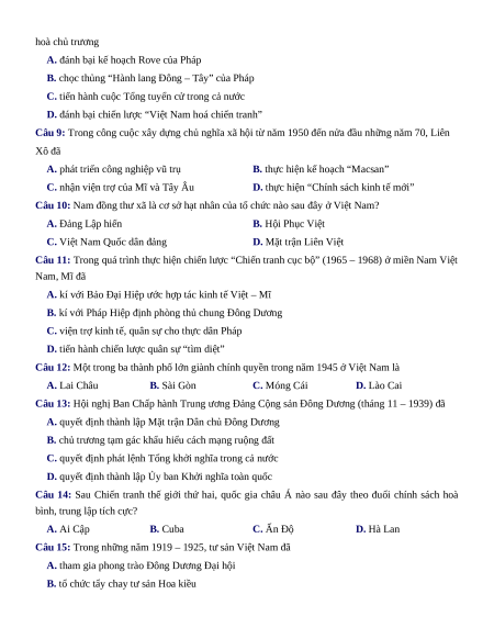 Câu 8: Trong những năm 1945 – 1946, Đảng và Chính phủ lâm thời nước Việt Nam Dân chủ Cộng hoà chủ trương