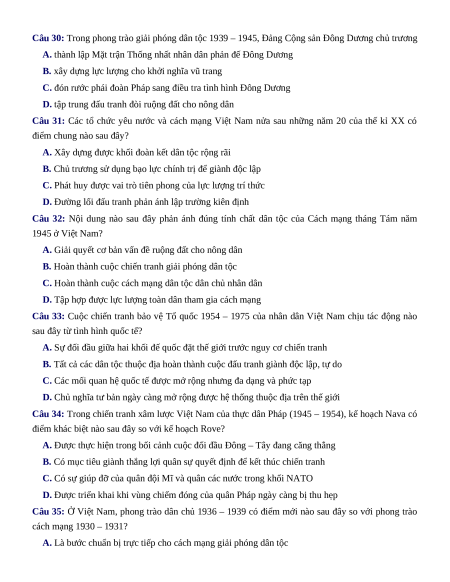 Câu 12: Một trong ba thành phố lớn giành chính quyền trong năm 1945 ở Việt Nam là A. Lai Châu B. Sài Gòn C. Móng Cái D. Lào Cai