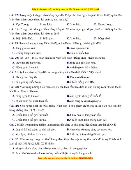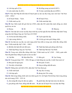 Câu 5: Trong những năm 1945 – 1954, quốc gia nào sau đây phải chống lại sự xâm lược của thực dân Pháp? A. Hà Lan. B. Mĩ. C. Campuchia. D. Anh.