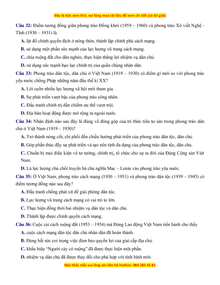 Câu 3: Trong giai đoạn 1936 – 1939, Đảng Cộng sản Đông Dương đã phát động quần chúng tổ