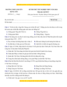 KÌ THI THỬ TỐT NGHIỆP THPT NĂM 2024 HƯNG YÊN Môn thi: LỊCH SỬ
