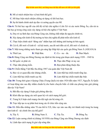 Câu 7: Một trong những nước tham gia sáng lập Hiệp hội các quốc gia Đông Nam Á (ASEAN) là 2 A. Thái Lan. B. Nhật Bản. C. Ca – na – đa. D. Đan Mạch.