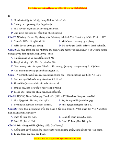 Câu 20: Âu mưu thâm độc của Mĩ trong thủ đoạn “dùng người Việt đánh người Việt”, “dùng người