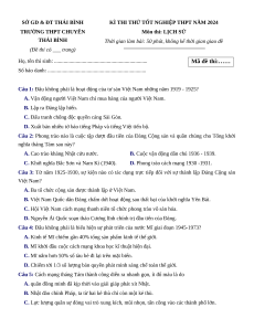 KÌ THI THỬ TỐT NGHIỆP THPT NĂM 2024 TRƯỜNG THPT CHUYÊN Môn thi: LỊCH SỬ THÁI BÌNH