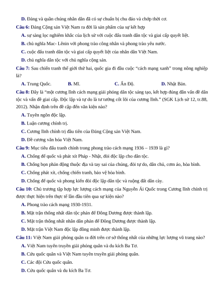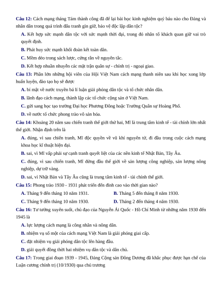 Câu 17: Trong giai đoạn 1939 - 1945, Đảng Cộng sản Đông Dương đã khắc phục được hạn chế của