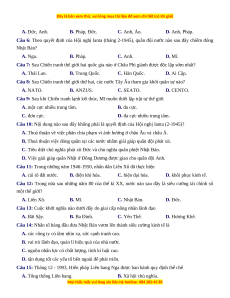 Câu 8: Sau Chiến tranh thế giới thứ hai, các nước Tây Âu tham gia khối quân sự nào? A. NATO. B. ANZUS. C. SEATO. D. CENTO.