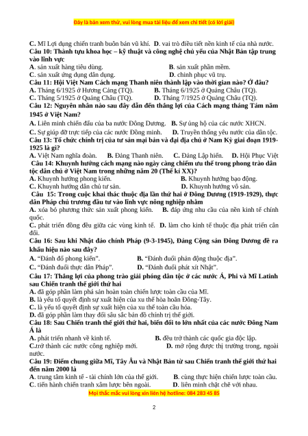 Câu 18: Sau Chiến tranh thế giới thứ hai, biến đổi to lớn nhất của các nước Đông Nam Á là