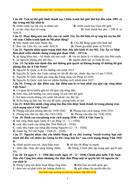 Câu 20: Trật tự thế giới hình thành sau Chiến tranh thế giới thứ hai đến năm 1991 có