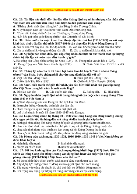 Câu 29: Tài liệu nào dưới đây lần đầu tiên khẳng định sự nhân nhượng của nhân dân