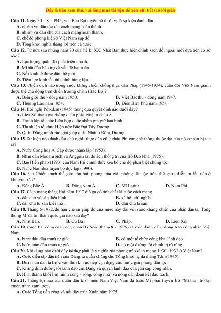 Câu 31. Điểm chung của Cách mạng tháng Tám năm 1945, kháng chiến chống Pháp (1945 - 1954) và