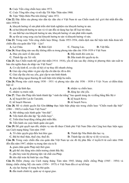 Câu 28. Mĩ và chính quyền Sài Gòn không thực hiện biện pháp nào trong chiến lược “Chiến tranh đặc biệt”