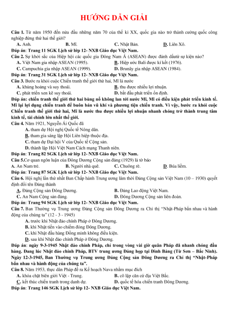 Câu 3. Từ năm 1950 đến nửa đầu những năm 70 của thế kỉ XX, quốc gia nào trở thành cường quốc công