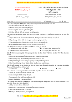 KSCL CÁC MÔN THI TỐT NGHIỆP LỚP 12 THPT Quảng Xương 4 NĂM HỌC 2023 - 2024 MÔN: Lịch Sử --------------------