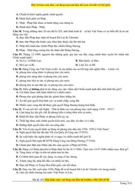 Mã đề 101 Mọi thắc mắc vui lòng xin liên hệ hotline: 084 283 45 85 Trang 3/12