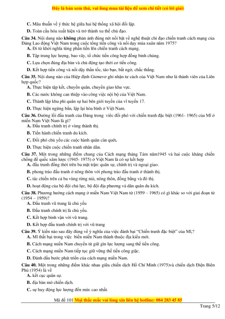 Mã đề 101 Mọi thắc mắc vui lòng xin liên hệ hotline: 084 283 45 85 Trang 4/12
