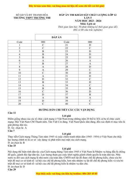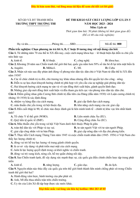 Đề thi thử tốt nghiệp Lịch sử trường THPT Trường Thi năm 2024