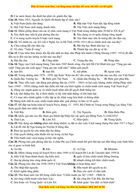 Câu 3. Nhận xét nào sau đây phản ánh đúng về phong trào dân tộc dân chủ ở Việt Nam từ đầu thế kỉ XX đến năm 1930?