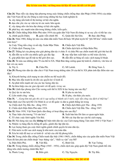 Câu 25. Chiến thắng Điện Biên Phủ năm 1954 của quân dân Việt Nam đã chứng tỏ sự suy yếu và bất lực của