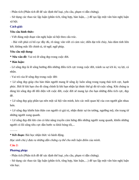 Học sinh chú ý đưa ra những dẫn chứng cụ thể cho mỗi luận điểm của mình. Câu 2: Phương pháp: