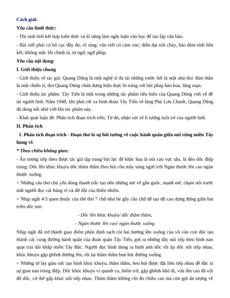 (Tây Tiến, Quang Dũng, Ngữ văn 12, tập 1, tr.89, NXB Giáo dục, 2008)