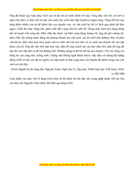 Câu 2 (VDC): Trong tùy bút Người lái đò sông Đà, Nguyễn Tuân viết: