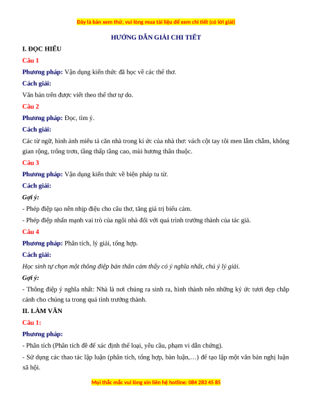 HƯỚNG DẪN GIẢI CHI TIẾT I. ĐỌC HIỂU Câu 1