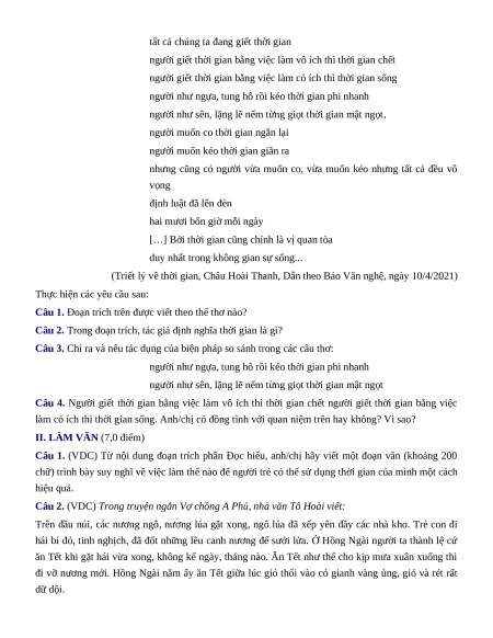 Câu 1. (VDC) Từ nội dung đoạn trích phần Đọc hiểu, anh/chị hãy viết một đoạn văn (khoảng 200