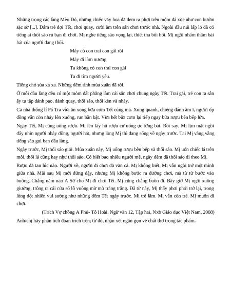 (Trích Vợ chồng A Phủ- Tô Hoài, Ngữ văn 12, Tập hai, Nxb Giáo dục Việt Nam, 2008)